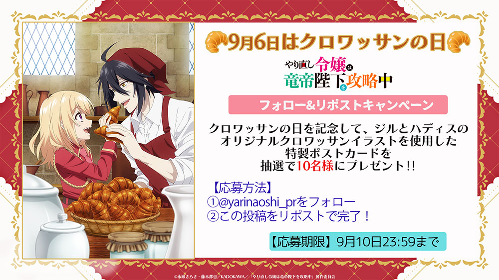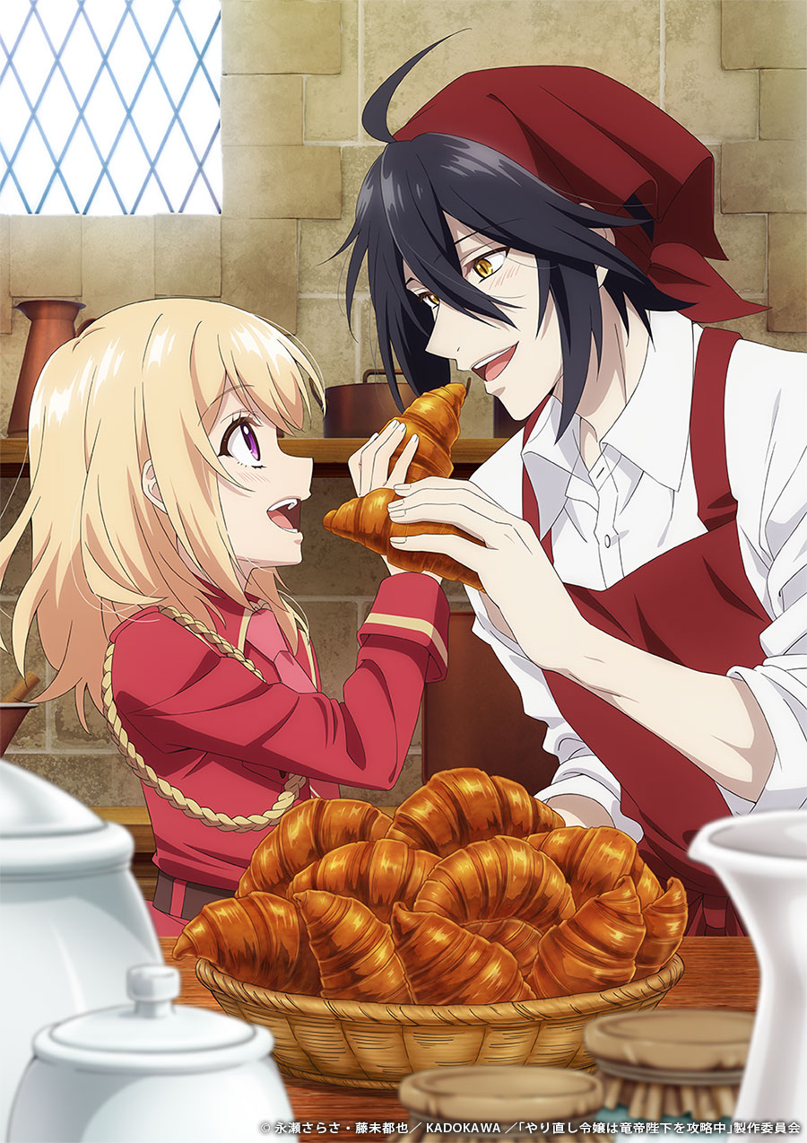 という事で「やり直し令嬢は竜帝陛下を攻略中」のジルとハディスがクロワッサンを食べているイラストを公開!!